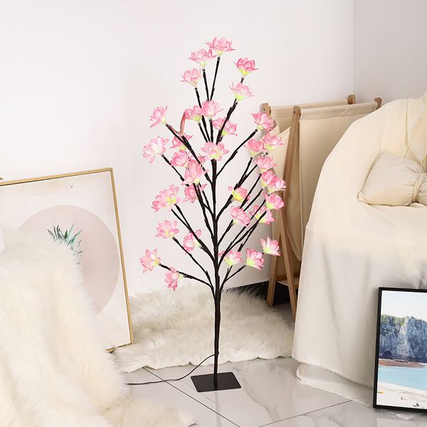 Whimsical LED Flower Tree Floor Lamp, Artificial Blossom Standing Light with Adjustable Branches - 110V-120V White Light