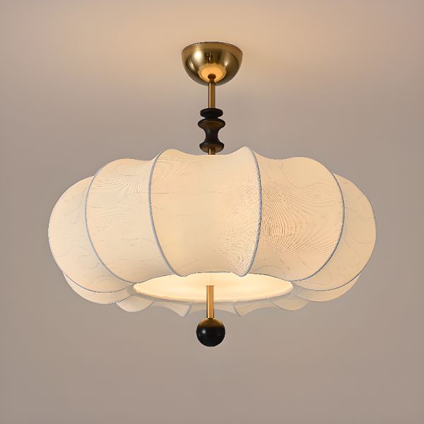Japandi Fabric Semi Flush Mount Light, Organic Pumpkin Lantern Fixture for Soft Ambient Glow - Black 110V-120V 24"