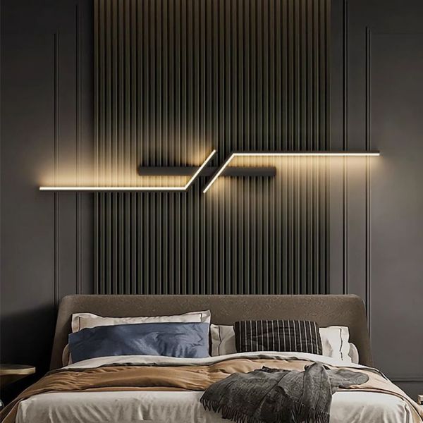 Minimalist Geometric LED Wall Sconce, Linear Metal Bar Light Fixture for Hallway and Bedroom - Black 110V-120V 100 cm