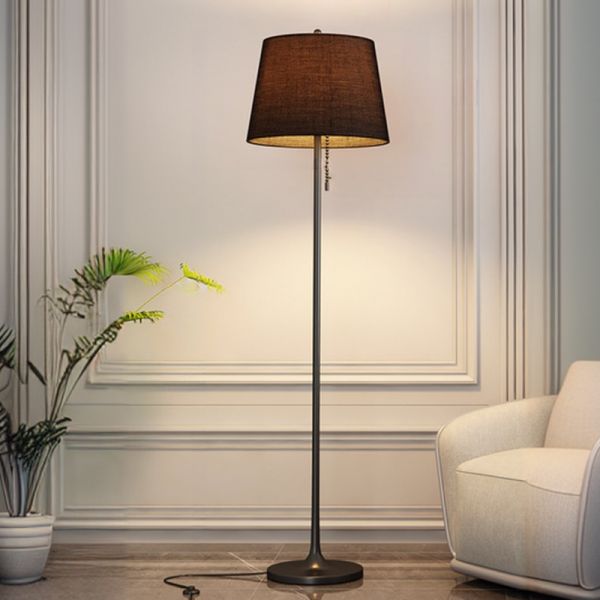 Minimalist Metal Floor Lamp with Fabric Shade and Classic Pull Chain Switch - 110V-120V Black Black
