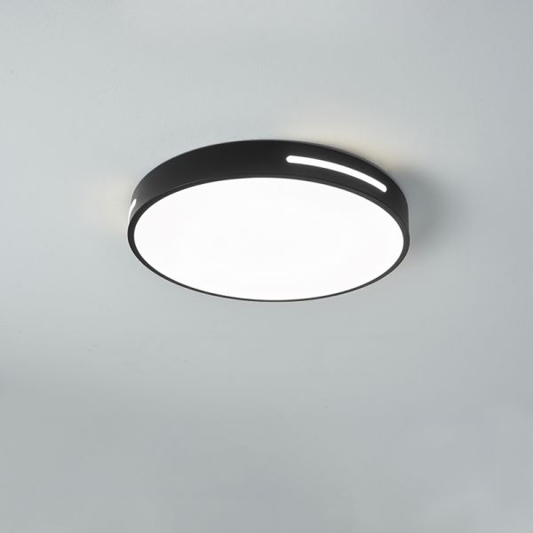 Minimalist LED Flush Mount Ceiling Light, Ultra-Slim Low Profile Fixture with Side Accents - Black 110V-120V 23 cm Circle