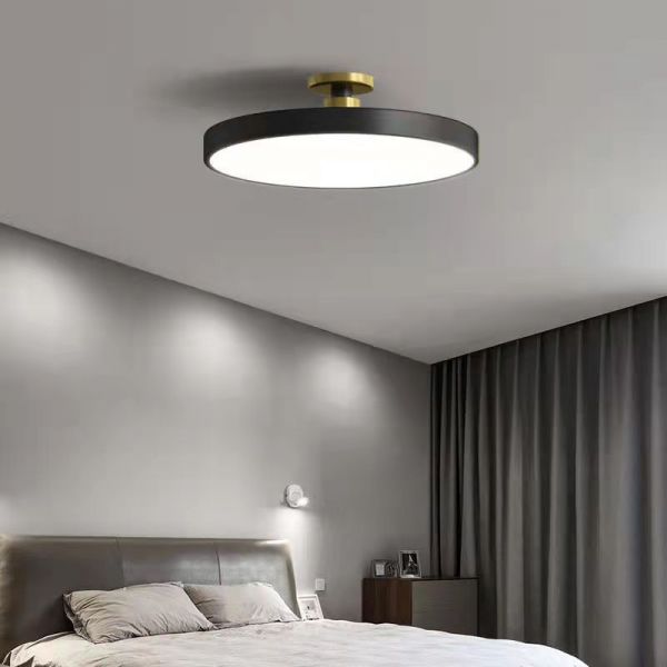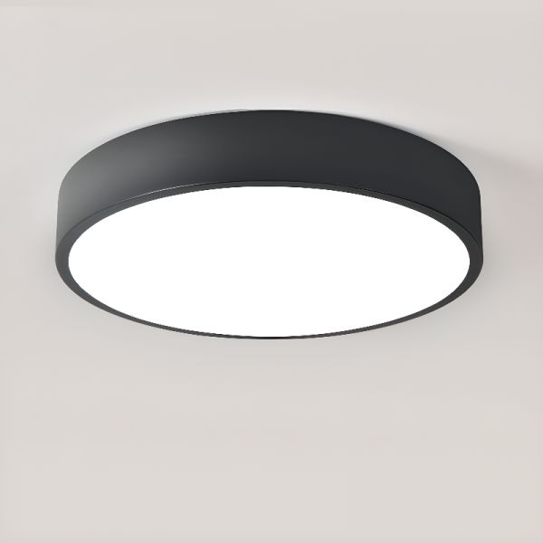 Scandinavian Round LED Flush Mount Ceiling Light, Low Profile Minimalist Fixture for Bedroom and Hallway - Black/White 110V-120V 16"