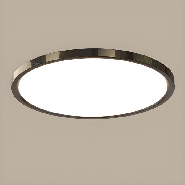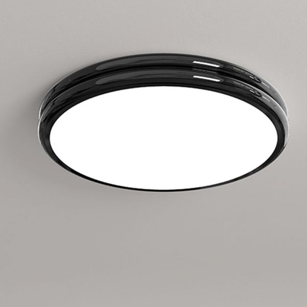 Scandinavian Round LED Flush Mount Ceiling Light, Vibrant Glossy Metal Fixture - Black 110V-120V 12"