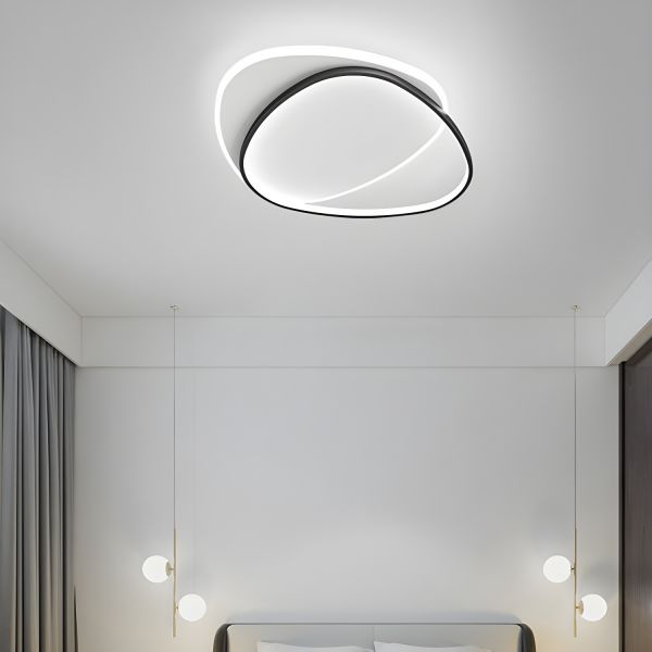 Nordic Minimalist LED Ceiling Light, Organic Wavy Ring Flush Mount Fixture - 110V-120V 16.5" Black White Light