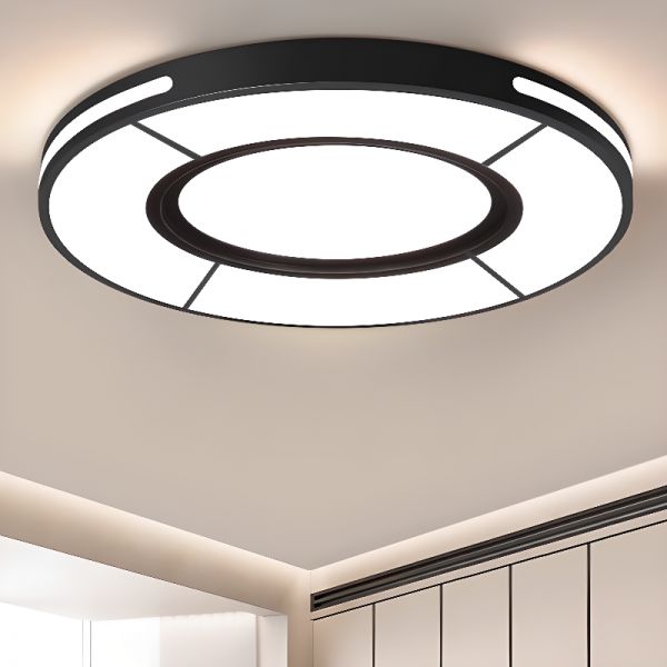 Contemporary LED Flush Mount Ceiling Light, Geometric Ring Fixture with Anti-Glare Acrylic Shade - Black 110V-120V 16" White Light