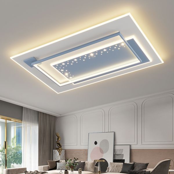 Contemporary Geometric LED Flush Mount Light, Layered Ceiling Fixture with Starry Diffuser - Blue 110V-120V Rectangle