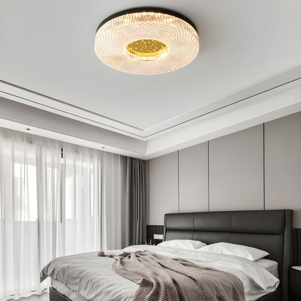 Luxe Copper Flush Mount Ceiling Light with Starry Faceted Acrylic Shade - 110V-120V Black 16"
