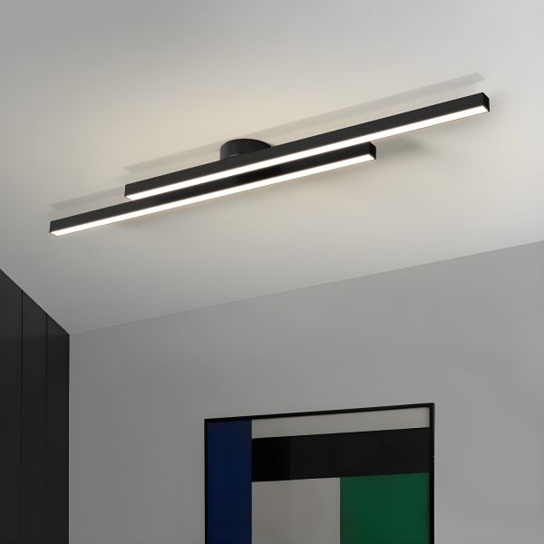 Contemporary Geometric LED Flush Mount Ceiling Light, Architectural Linear Bar Fixture for Living Room - Black 110V-120V 24" 2
