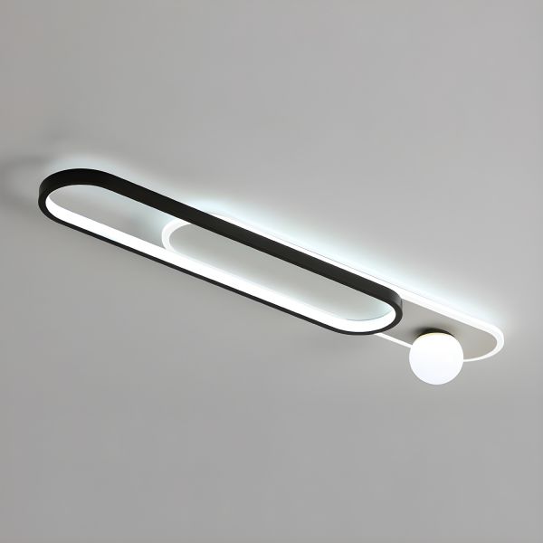 Contemporary Geometric Linear LED Ceiling Light, Flush Mount Metal Fixture with Acrylic Globes - 110V-120V Black 24" White Light