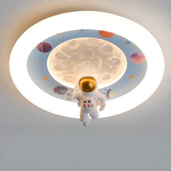 Whimsical Astronaut LED Ceiling Light with 3D Moon Texture for Kids Bedroom Playroom - Blue 110V-120V Third Gear (Warm/White/Neutral Light of Dimming)