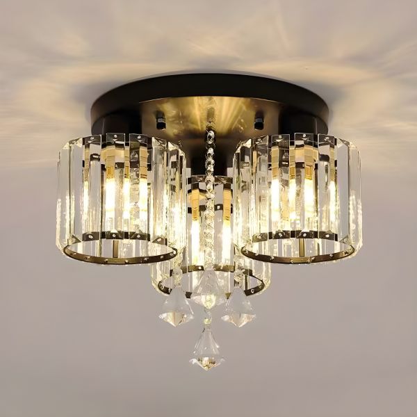 Luxe Crystal Flush Mount Ceiling Light, Contemporary Round Chandelier Fixture with Faceted Shades - Black 110V-120V 3