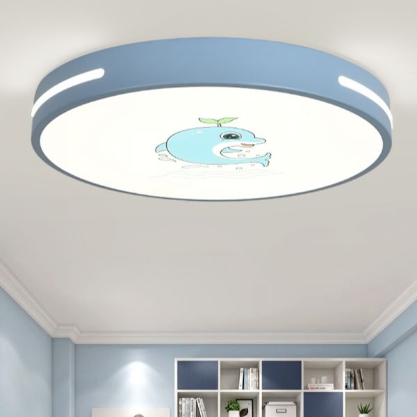 Nursery School LED Hanging Lamp Macaron Style Circular Pendant Light with Acrylic Shade - 110V-120V 16" Blue