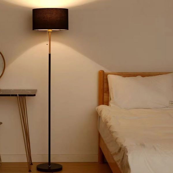 Minimalist Metal Floor Lamp with Fabric Drum Shade and Pull Chain Switch for Living Room - 110V-120V Black