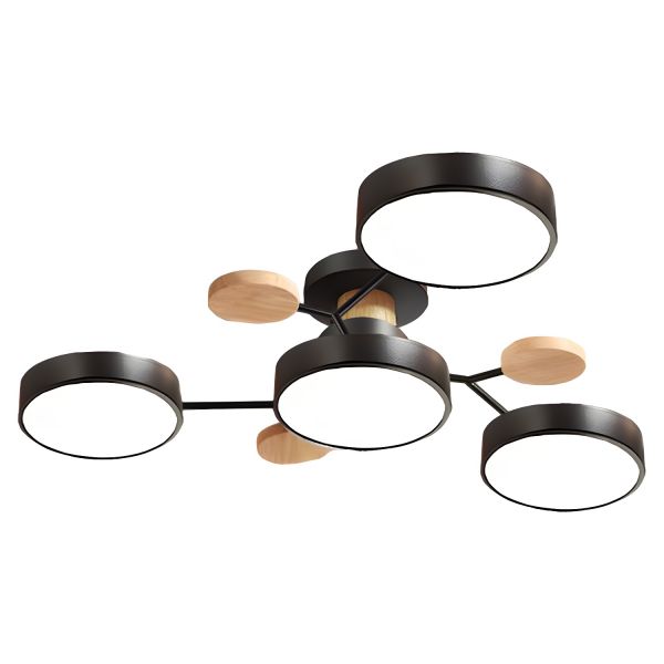 Scandinavian LED Flush Mount Ceiling Light, Geometric Sputnik Fixture with Solid Wood Accents, Low Profile Ambient Lighting - 4 Black 110V-120V