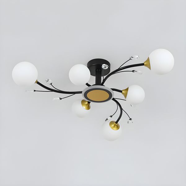 Contemporary Branch Semi Flush Mount Light, Dimmable Sputnik Ceiling Fixture with Crystal Accents - 110V-120V 7 Third Gear (Warm/White/Neutral Light of Dimming)