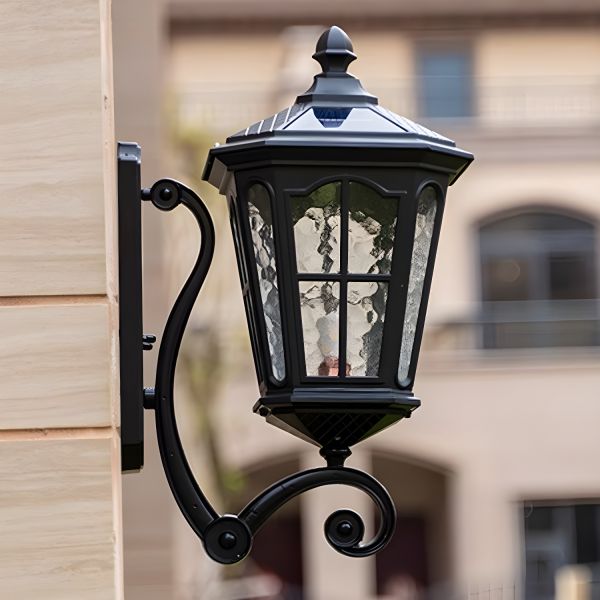 Rustic Exterior Wall Lantern, Weather-Resistant Aluminum Porch Light with Decorative Rain Glass - 110V-120V Black 9.5"