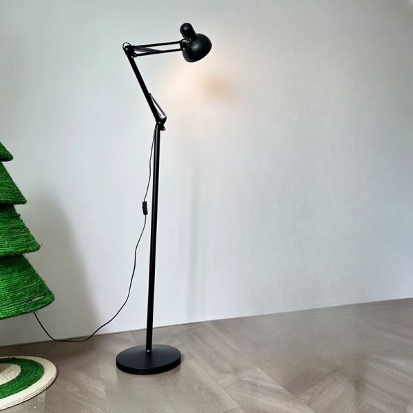 Retro Industrial Swing Arm Floor Lamp – Adjustable Metal Architect Standing Light for Reading - 110V-120V Black