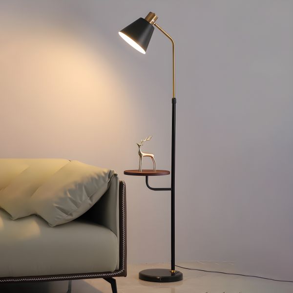 Minimalist Shelf Floor Lamp with Integrated Tray Table & Fabric Shade - 110V-120V Black/Brown