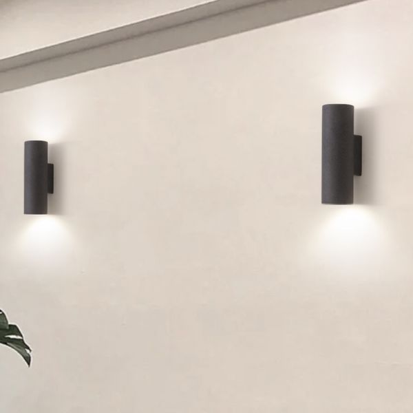 Industrial Cement Style Wall Sconce, Textured Stone Look Up and Down Light Fixture for Patio or Hallway - Black 110V-120V Cylinder White Light