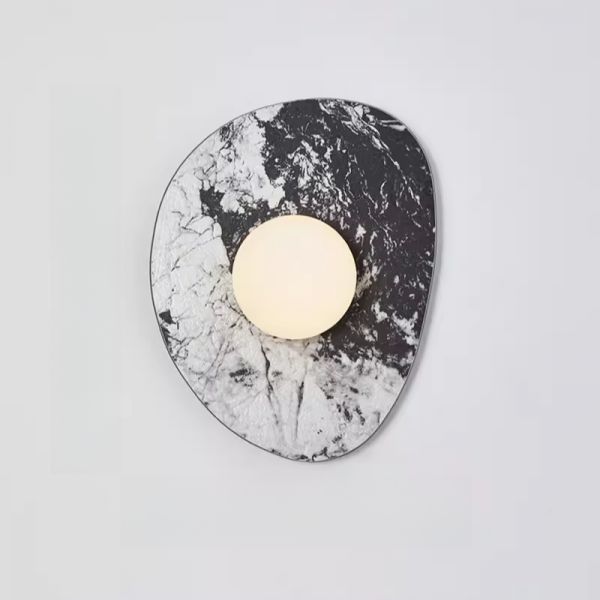 Natural Marble Disc LED Wall Sconce - Organic Modern Light - 110V-120V Black 6.5"