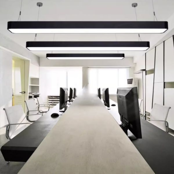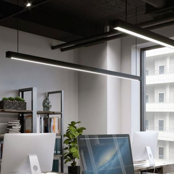 Architectural Linear LED Pendant Light, Black Aluminum Suspension Fixture for Office & Island - Down 110V-120V 118 cm 1.5"