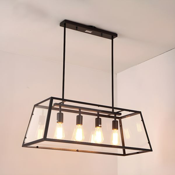 Industrial Farmhouse 4-Light Linear Island Chandelier with Clear Glass Shade - 110V-120V