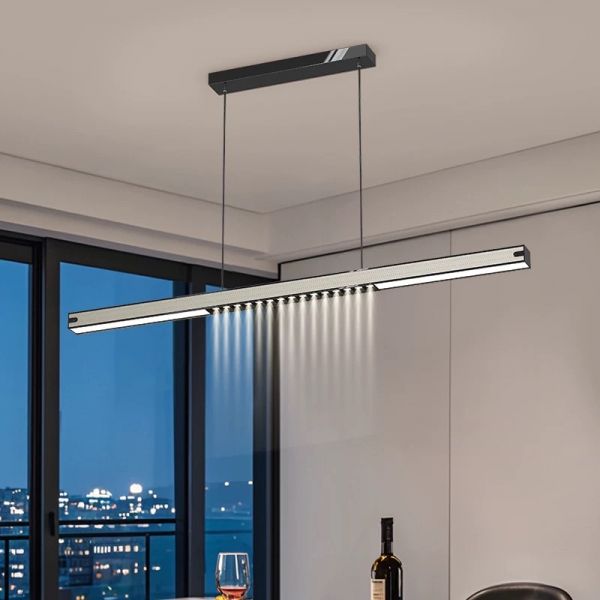 1-Light Linear Simple Characteristic Modern Style LED Hanging Island Pendant Light - Black 110V-120V 47" White Light