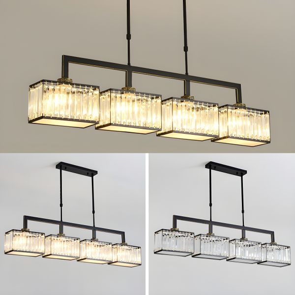4 Lights Flexible Hanging Length Direct Wired Electric Rectangular Third Gear Drop Light Kitchen Island with Glassy Cover for Residential Use, 110V-120V, 39.5"