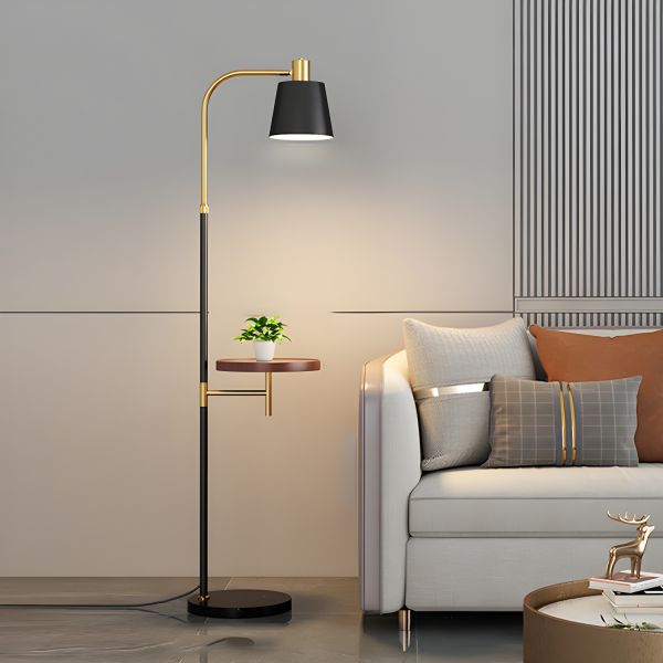 Contemporary Floor Lamp with Integrated Tray Table and Adjustable Swivel Head - 110V-120V Black/Brown