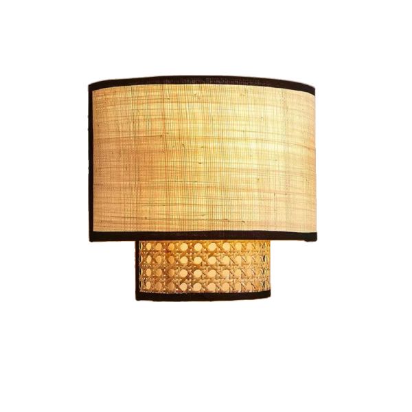 Bohemian Coastal Hand-Woven Rattan Wall Sconce for Bedroom - 110V-120V 9.5"