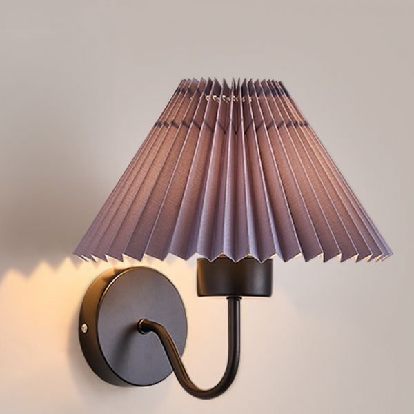 Dark Blue Cone Cloth Shade Wall Light, Black, 110V-120V