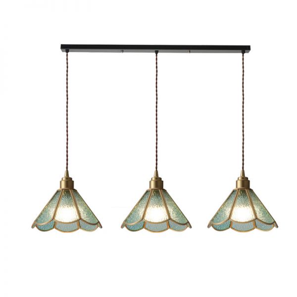 Turquoise Pendant Lighting with 3 Lights, Rope Mounting, Regular Fixture, Glass Shade, Led & Incandescent/Fluorescent, Direct Wired Electric, 110V-120V