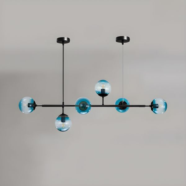 Mid-Century Modern Linear Island Chandelier 6-Light Glass Globe Pendant for Dining Room Kitchen - 110V-120V Black Blue