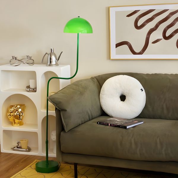 Retro-Chic Curved Stem Floor Lamp with Glossy Green Mushroom Shade - 110V-120V