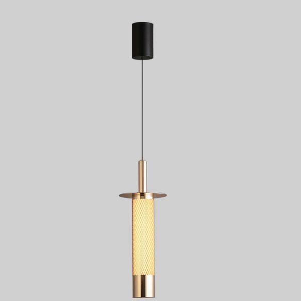 Golden Aluminum Shade Cylindrical Container Pendant, 110V-120V, Warm Light