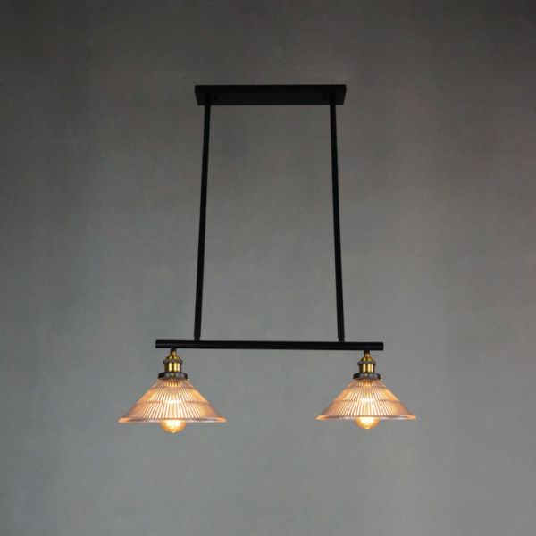 Industrial Linear Pendant Light, Kitchen Island Fixture with Brass Accents, Retro Farmhouse Style - Conical 110V-120V 2