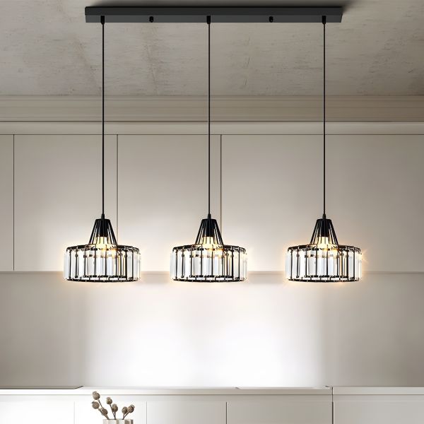 Transitional Glam 3-Light Linear Island Pendant, Metal Cage Chandelier with K9 Crystal Accents - 110V-120V Black