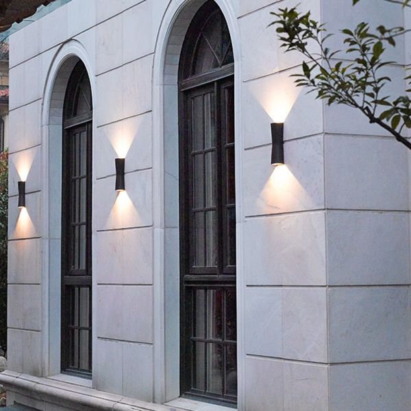 Minimalist Aluminum LED Wall Sconce, Waterproof Up Down Exterior Fixture for Patio & Entryway - 110V-120V 6 Red Light