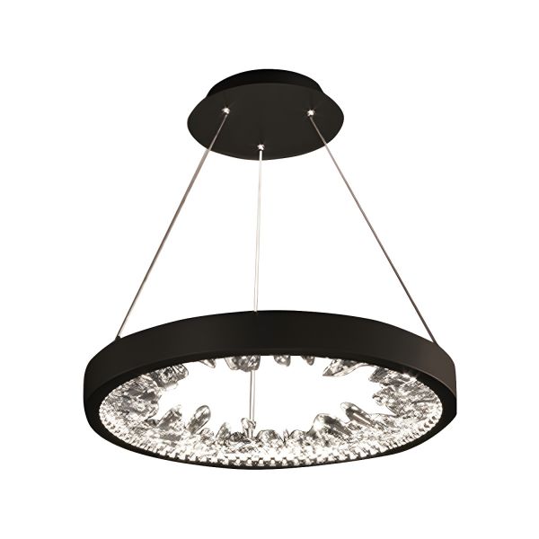 Contemporary LED Halo Chandelier, Circular Ring Pendant Light with Textured Crystal Prisms - 110V-120V Black 16"