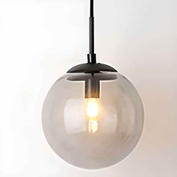 Mid-Century Modern Glass Globe Wall Sconce, Hanging Pendant Light Fixture for Bedroom & Hallway - 110V-120V Black 6" Clear