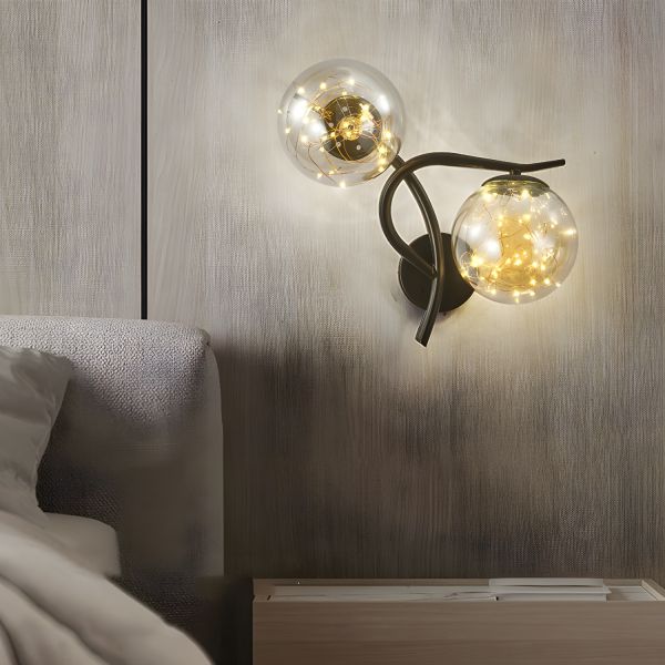 Nordic LED Wall Sconce with Starry Fairy Light Glass Globes and Organic Branch Design - 110V-120V Black Left Clear