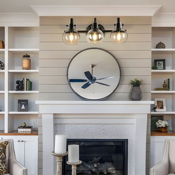 Industrial Farmhouse 3-Light Bathroom Vanity Fixture, Matte Black Sconce with Clear Glass Globes - 110V-120V