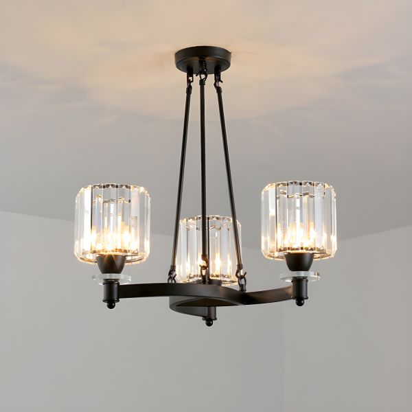 Transitional Black Wagon Wheel Chandelier with Faceted K9 Crystal Shades - 110V-120V 3