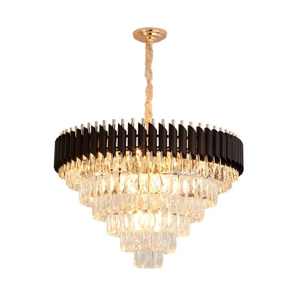 Luxe Contemporary Crystal Chandelier, Tiered Round Pendant Light with Faceted Prisms for Dining Room - 110V-120V Black 16"