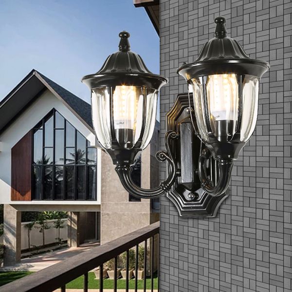 Vintage Outdoor Wall Sconce, Waterproof Die-Cast Aluminum Lantern with Glass Shade for Porch & Patio - Black 110V-120V