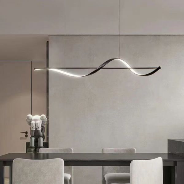 Contemporary 2 Lights Island Ceiling Light with Linear Chalk Silica Gel Shade and LED Thread Mounting, Black, 110V-120V, Warm Light, 31.5"