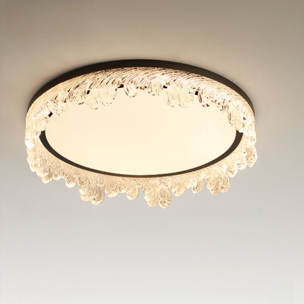 2 Lights Flush Mount Light with Translucent Crystal, Black Simple Style LED Hardwired with Polymethyl Methacrylate Shade, 110V-120V, 20"