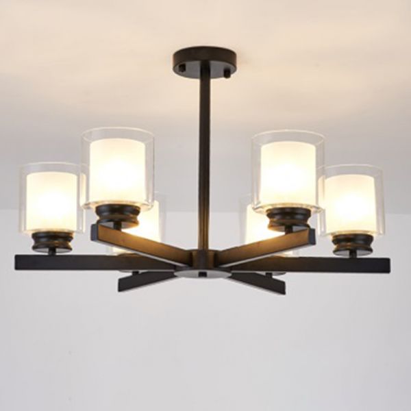 Transitional Metal Chandelier with Dual Glass Shades for Dining and Living Room - 110V-120V 6