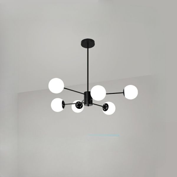 Mid-Century Modern Sputnik Chandelier with Opal Glass Globes for Ambient Home Lighting - 110V-120V Black 6