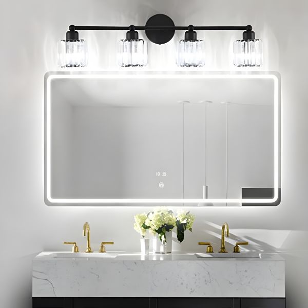 Faceted Crystal Vanity Light, Linear Bathroom Wall Sconce Fixture - Black 4 110V-120V